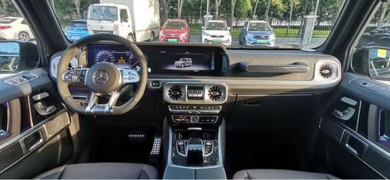 20款奔驰G63其中双12.3英寸高清屏,虚拟仪表盘与中控液晶屏融为一体,视觉上形成一个宽屏驾驶舱,中部的涡扇式空调出风口也颇具设计感,还大量采用了皮革的包覆。另外,新一代G级 (配置|询价)还对驾乘空间也进行了优化。