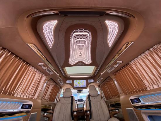 车顶更是有着奔驰设计师全新设计的车顶氛围大灯,全新的科幻设计风格和车内略带一些古意的装饰风格融合的十分恰当。