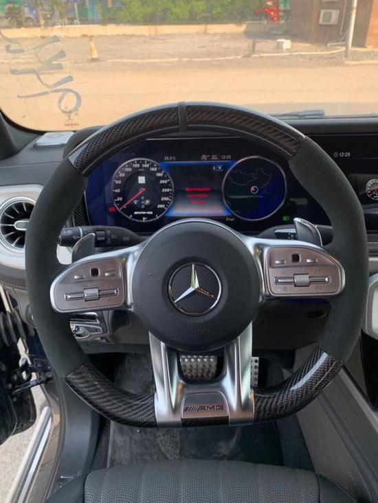 20款全新G63内饰方面,新G63保留了新G500的整体设计,除配色差异外,新车还换装了全新造型的平底式AMG运动方向盘,其两侧配以打孔皮质包裹,下部镀铬装饰的造型也与新G 500明显不同,看上去十分战斗。此外,全液晶仪表盘+中控大屏的双12.3英寸屏幕设计在新车上也没有缺席,营造出了浓郁的科技感。