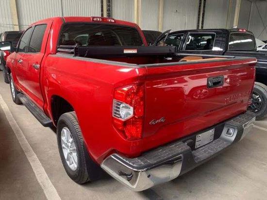 19款丰田坦途排量5.7L自然吸气发动机,8缸V型,最大功率380KW,最大功率转速6500prm,最大扭矩544Nm,变速箱6挡手自一体,四驱两驱切换,车身长宽高(5814*2006*1935mm)市区油耗20.00L/100KM,郊区油耗17.00L/100KM,最高车速185km/H,轴距3700mm,整备质量2419Kg,满载质量3268Kg,最小离地间隙270mm,四门五座,汽油,国五排放标准,油箱容积139升,非承载式车身。
