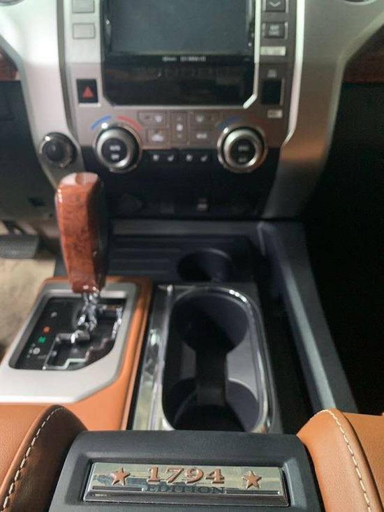 丰田坦途1794版内饰较为简洁大方,在色彩设计上基调较深,处处彰显的科技感和运动感还是暴露了这款车的特点。车间内的储物能力也十分强大,对于这种加版皮卡来说储物空间吝啬说不过去了,如果细数的话,车内光水杯架就有不下与10个。分别在前排扶手箱处、后排扶手处以及车内门板等各处一应俱全。