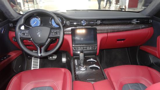 玛莎拉蒂总裁3.0T S 配备了一款全新样式的仪表盘,增添了科技感,仪表板并没有变化,但新车增加了ACC自适应巡航、车道偏离警告、全景影像和自动紧急制动辅助系统等四大安全辅助功能。中控面板取消了两个空调系统的旋钮,同时在挡把后方增加了用于控制多媒体系统的集成式旋钮。玛莎拉蒂总裁多媒体系统,可以说已涵盖当前最主流的汽车座舱多媒体系统,包括整合丰富的行车电脑、内藏30GB的硬盘容量以及卫星导航图与MP3数字音源播放。