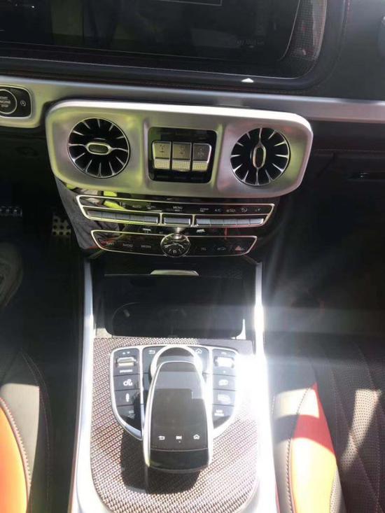 内饰方面其实才奔驰G63最大的变化。奔驰G63换上了奔驰最新家族式的内饰设计,这无疑让它拥有了旗舰级应有的豪华感,不过经典的副驾驶席扶手和三把锁的开关键依旧延续了经典设计,并设置在中控台最显眼的位置。其中双12.3英寸高清屏,虚拟仪表盘与中控液晶屏融为一体,视觉上形成一个宽屏驾驶舱,中部的涡扇式空调出风口也颇具设计感,还大量采用了皮革的包覆。另外,奔驰G63还对驾乘空间也进行了优化。