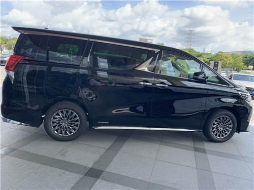 新车采用了密集的轮圈,颇具设计感。通过打开的车门可以看到,LM内部采用了四座布局,后排座椅使用了隔离式密闭车厢设计,有较强的私密性,而且我们可以充分期待后排座椅的奢华度。