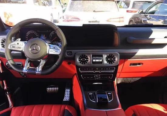 20款全新G63内饰方面,新G63保留了新G500的整体设计,除配色差异外,新车还换装了全新造型的平底式AMG运动方向盘,其两侧配以打孔皮质包裹,下部镀铬装饰的造型也与新G 500明显不同,看上去十分战斗。此外,全液晶仪表盘+中控大屏的双12.3英寸屏幕设计在新车上也没有缺席,营造出了浓郁的科技感。