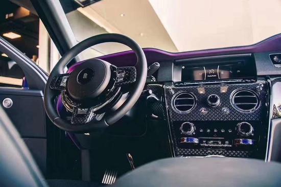 劳斯莱斯库里南的内饰将、劳斯莱斯的奢华与简洁对称的功能之美融为一体。中控面板的边框由手工打磨的金属条包裹,不仅将上部的仪表板和中部的控制台连接起来,更通过容纳仪表板上的横向设计元素,增加了掌控感。三幅式设计的方向盘看上去尺寸不小,足够厚实。中间多功能控制区有实木点缀,以至于开着库里南也有一种生活的仪式感。