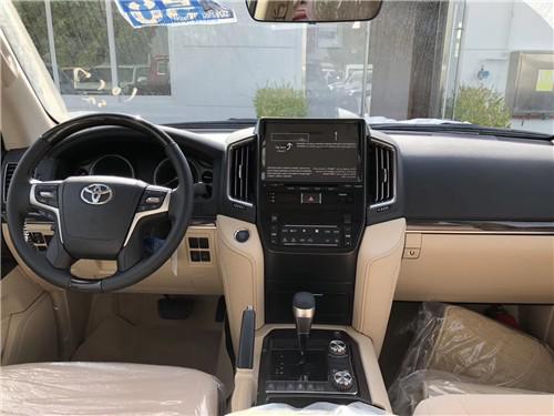20款丰田酷路泽4600整个操控区域色调为深色系,仪表盘,方向盘和排挡等位置均配以桃木装饰,尽显豪华质感。新款丰田酷路泽4600不但有DND导航,这款车的倒车影像还可以显示在内后视镜上,中央扶手箱还装备了冷藏箱,这些都与中规版的车型是有所不同的。