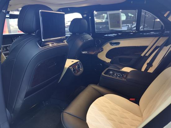 慕尚加长两个“航空级”座椅加上电动腿托的加入,腿部也不会受到限制,让乘坐更加舒适。中控台纵贯座舱,其手工制作的精美饰面巧妙地容纳了诸多存储功能。中央通道内隐藏了两块小桌板,面积足够大,防滑性能也很好,使用也非常方便。两块10.2英寸的后排多媒体娱乐显示屏不仅带有伸缩功能,还可独立拆下,作为一个平板电脑使用,插上SIM卡即可浏览网页,功能及其强大。后排车窗均配有隐私遮阳帘,保证了您后排的私密性,坐在其中让您的身心享受真正安静的空间。