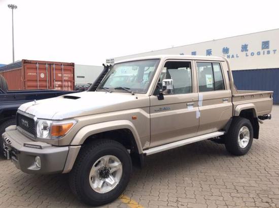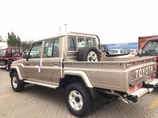 19款中东酷路泽4.0 LC78 现车手续齐配置:5245*1790*2115,轴距2980,离地距268,最小转向半径6.8m,整备质量2110-2320kg,毛重3200kg,油箱容量90+90,排量3956CC,最大功率228hp/5200rpm,最大扭矩36.7kgm/3800rpm,5速手档,分时四驱,225/95R16 轮胎,前碟刹,后鼓刹,ABS,VSC,EBD,BA,HAC,ATRC,两气囊,前后挡泥板,脚踏板,丝绒座椅,5座,数码钟,车窗除雾,AM,1扬声器,手动天线,加热空调,手抠箱带锁,后雾灯,镀铬前栅,涉水器,胎压监测
