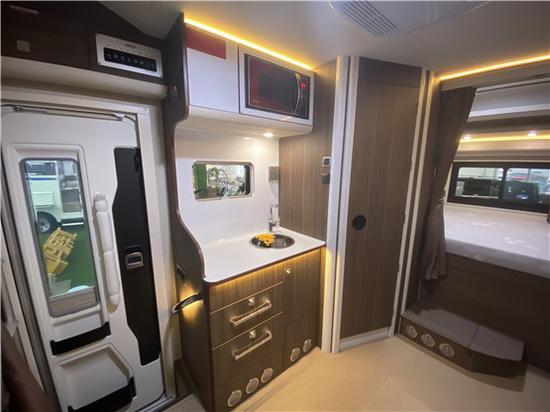 再说说这厨房区域,虽然这款依维柯房车没有房车比较常见的电磁炉,但是微波炉和洗菜池还是有的,一些便利性的食品都可以正常处理。