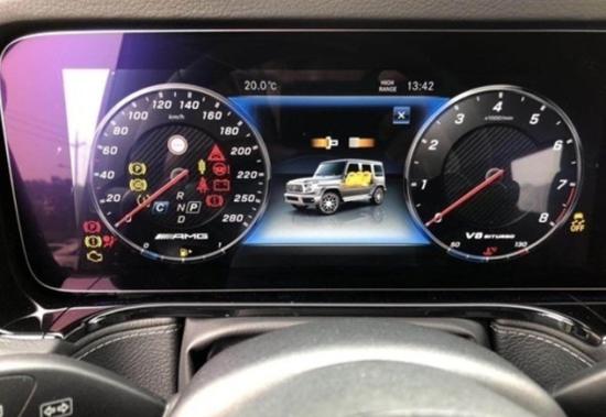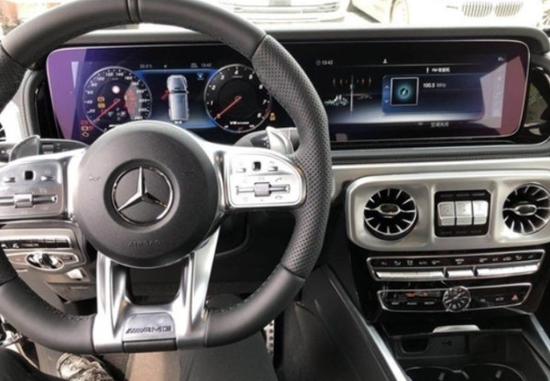 20款G63保留了新G500的整体设计,除配色差异外,新车还换装了全新造型的平底式AMG运动方向盘,其两侧配以打孔皮质包裹,下部镀铬装饰的造型也与新G 500明显不同,看上去十分战斗。此外,全液晶仪表盘+中控大屏的双12.3英寸屏幕设计在新车上也没有缺席,营造出了浓郁的科技感。
