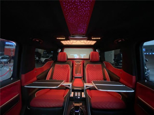 奔驰G580加长版翼子板上的“V8”标识,彰显他发动机不可小觑的实力深色内舱符合越野车的实用原则,作为内饰核心的仪表台整体上也保持了规矩大方的造型风格,与简洁刚毅的外观相统一,既不强悍夸张也不讲究曲线玲珑。但是在用料和工艺上,g级车向来豪华的轿车兄弟靠近了一大步,同时将轿车上几乎所有的车内功能装备武装上身,最新的comman d娱乐系统也搬到了桃木镶嵌的中控台上。