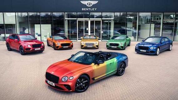 近日宾利官方正式发布了新款宾利欧陆 (配置|询价)GT V8特别版官图,而最为特别的,则是它以“彩虹”为主题的外观设计,车身共由6种颜色的车漆组成。