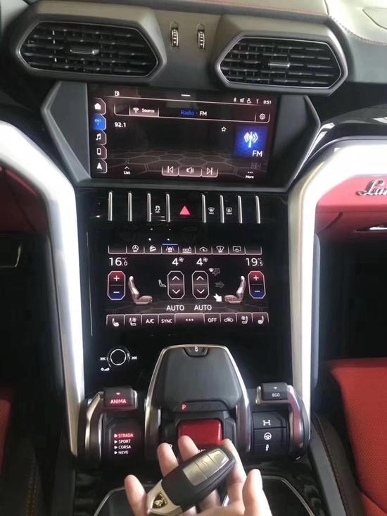 兰博基尼SUV野牛URUS三幅平底的方向盘为全新样式,皮质和Alcantara材质组合给了它绝佳的视觉效果和手感,中控点火按键上的“红盖头”则延续了兰博基尼传统,让你有一种启动的仪式感。
