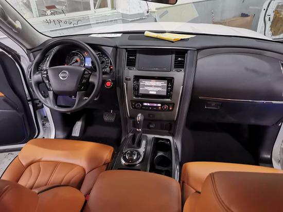 20款日产尼桑途乐Y62 途乐4.0仍然为三排座车型,内饰整体风格豪华,同时内饰风格任然延续了日产家居化的设计,以浅色调为主,出了轻松惬意的驾驶环境。全部完全遵循了游艇的设计风格,宽敞、舒适、豪华。