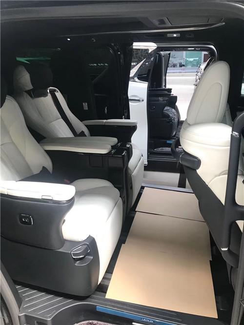 通过打开的车门可以看到,LM内部采用了四座布局,后排座椅使用了隔离式密闭车厢设计,有较强的私密性,而且我们可以充分期待后排座椅的奢华度。