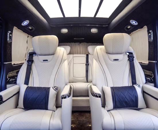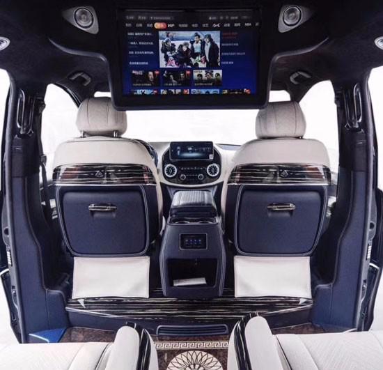 奔驰威霆改装七座商务车最豪华的当属第二排豪华航空座椅啦,座椅电动一键式展开记忆功能调节加反向座椅(带加热功能)。后排奢华三组模式一键式记忆折叠功能,附有加热、通风、电动控制!优雅变型、多项气动按摩功能缓解工作疲惫,17寸高清晰液晶吸顶电视机,音响设备则是来自日本的建伍5.1声道音响,在旅途之余也可为您带来视觉与听觉的盛宴!