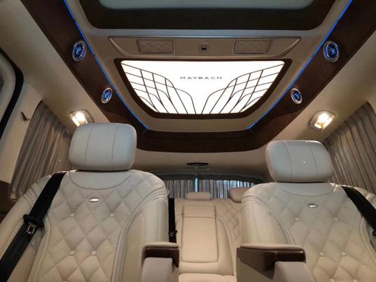 迈巴赫V700L商务车改装电动天窗可为乘客提供明亮、温馨的车内环境。天窗可电动开启,让人在旅途中更加亲近自然。遮阳帘可抵御强光的照射。在加配迈巴赫宫格棚灯,让您欲罢不能。