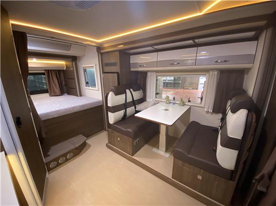 凯伦宾威依维柯双拓展房车是C型房车中空间最大的一款。整车将人性化设计理念和局部空间分割法完美结合,打造空间结构最佳、功能性最齐全的房车产品。