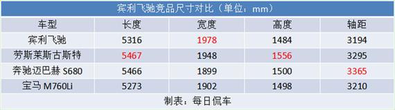 全新宾利飞驰尺寸方面长宽高分别为5316/1978/1484mm,全新一代飞驰基本保持了老款车型的长度,但轴距增加130mm,并配备有全新风格的22寸轮圈。底盘方面,全新的三气室自适应空气悬架、四轮转向系统、48V主动防倾杆等配置的出现,在舒适性以及操控性方面都有了显著的提升。