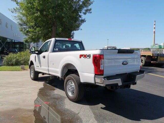 外观方面,福特F350在外观造型上刻意突出了威猛的形象,车身覆盖件设计得粗犷而充满张力,突出的前灯、尾灯、车门把手、牵引钩以及大面积的镀铬装饰条更强化了这种感觉。17英寸的车轮本来就已十分抢眼,后轮的双胎设计让人感觉更像一辆大吨位的重型P卡。