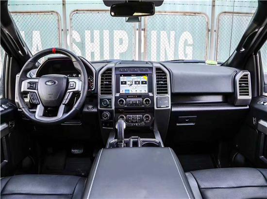 20款福特猛禽F150内饰采用独特的中控台和门饰板面漆和真皮包裹的方向盘。中控台部分辅以银色饰板装饰,六指针仪表盘的设计有些后工业时代的复古风格。采用带电冷热功能的可记忆式皮革座椅,头枕四向可调,搭配铝饰条和黑色钢琴烤漆内饰。可电动升降的后窗带隔板和电热除霜功能高科技丰富的配置,氛围灯、隐私玻璃、巡航控制、电动加热折叠外后视镜、自动启停、8寸导航屏、双区空调、前雾灯、后座椅加热、电动脚踏、并道辅助、全景天窗、BO音响等均有配备,美丽的内饰,新款内饰方面非常考究,还有不同颜色和风格可选,顿时心情大好有没有。