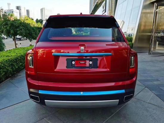 劳斯莱斯库里南看上去像极了移动的城堡,恢弘伟大。尾部设计十分简洁,并没有采用过于华丽的装饰,矩形尾灯组颇具新意,内部还加入了直立的细灯条,点亮后视觉效果极佳。该车还装载了金属排气管和防撞击滑板,进一步彰显其动力与性能。