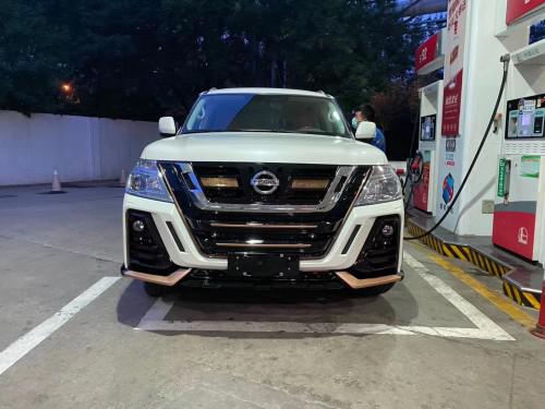 19款途乐Y62 4.0 XE的领主包围主要包括中网格栅、前杠总成、后杠总成、尾翼、中尾翼,中网格栅等饰件。改装之后在外观方面进行了进一步的升级,看起来更加霸气。前脸部分,V字形的散热器格栅用亮银色条幅和黄色条幅装饰,给人一种尊贵的感觉,两侧的卤素大灯与格栅相搭配更显犀利。