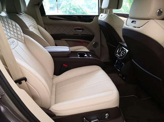 来到后排,奢华的工艺依旧逐一体现,顶级皮革与刺绣工艺做到了极致,座椅肩部支撑垫上绣有标志和加厚菱形图案,宽大的座椅舒适性表现如前排一样优越。但空间方面算不上很宽敞,当然添越的确是为驾驶者打造的车型,更多的照顾了前排需求。