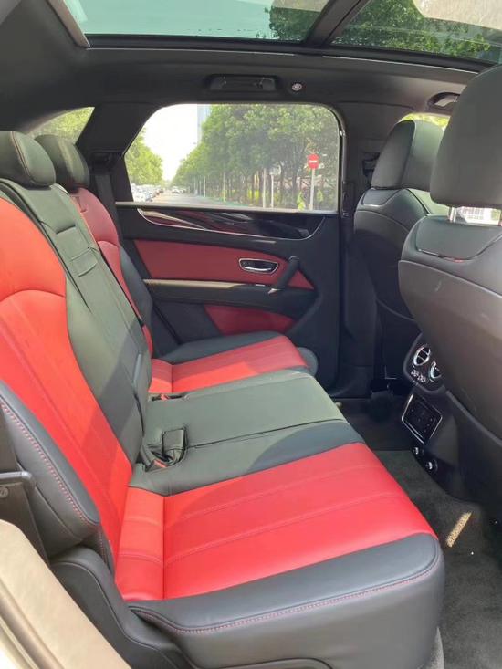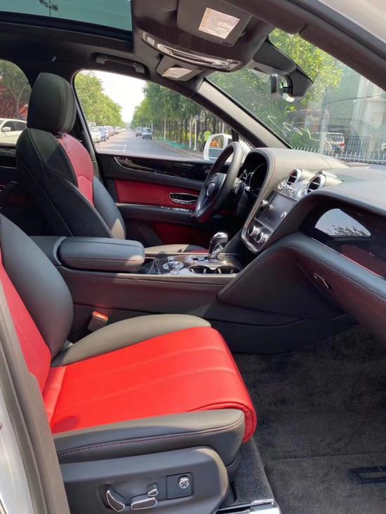 19款宾利添越4.0汽油 245万 白/热刺红+黑双拼 配置:旅行包(抬头显示,雷达测距,夜视系统),添越黑线外观包,颜色包(双色内饰,真皮顶),城市包(停车辅助,行人警示,倒车交通警示,交通标示识别,环影),对比缝线,后隐私玻璃,21寸 5幅双轮毂,LED欢迎穆勒灯,宾利绣花头枕,加热3幅方向盘,前后长毛地毯,氛围灯,前后脚垫。