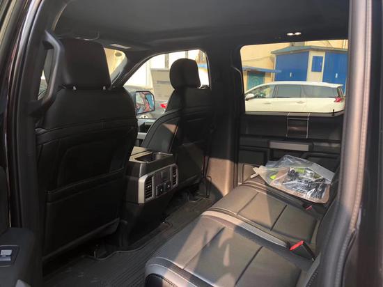 20款福特猛禽F150皮卡真皮座椅包裹性很强,无论是越野还是长途旅行,都很舒服,丝毫不感觉到这大家伙的压抑,二排空间也是十分宽敞,乘坐四个身材高大的乘客绝对没问题。座椅折叠起来可以放一个冰箱,而且门上储物格空间也是够用,虽然不像公羊后排那么豪华,有简易床,但是这种实用的理念就是福特的宗旨。