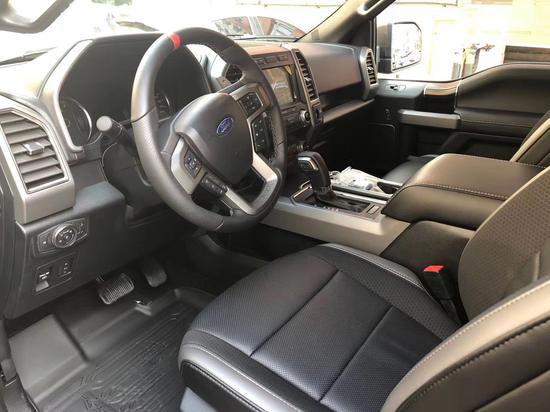 2020款福特猛禽F150表面颇具动感,内饰奢华,配置富厚,同时兼具跑车的动力机能、越野车的全地形制霸本领和豪华轿车的乘坐恬静性,并且它的改装空间也很大。车内配备标准独特的皮革和布艺装饰的座椅,驾驶员侧的电动十向调节。这些座椅同时具备记忆功能。中央控制区搭配了触控式显示屏,其下方则是多媒体控制区及空调面板,采用旋钮+物理按键的组合。