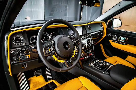 劳斯莱斯库里南大面积皮革和实木饰板搭配的中控台,辅以银色装饰条搭配,游艇式方向盘造型同样适用皮革与木饰板相搭配。全新的全液晶仪表盘采用三圆仪表设计,辅以虚拟表盘和指针,适用现代科技完成复古风格。
