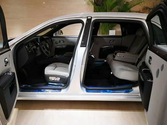 2020款劳斯莱斯古斯特加长版车身与车轮高度2:1的比例,平直高耸的腰线,让整车侧面看上去无比尊贵,看上去给人一种无比尊贵的视觉享受。经典的对开门设计,采用一对向后开的后门,内部可以舒适的容纳五名成年乘客。该车的内装非常简洁,控制键的数量大幅减少,重要的功能键表面都采用镀铬装饰以起到提升作用。