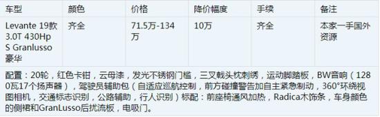 20款玛莎拉蒂莱万特美规版前灯组造型视觉效果非常锋利,前保险杠下部计划有摆布领悟式的进气口,进一步彰显了其活动化的气势派头。车辆前脸,可以看到玛莎拉蒂的家族化进气格栅以及分体式的大灯。前保险杠将中格栅与雾灯装饰罩做成为了一个团体,双侧则参加了LED白天行车灯。不但具有玛莎拉蒂家属DNA的表面造型、精细豪华的内饰以及基于现实需求斟酌的空间计划,加倍您带来超常的驾驶体验。详情如下表: