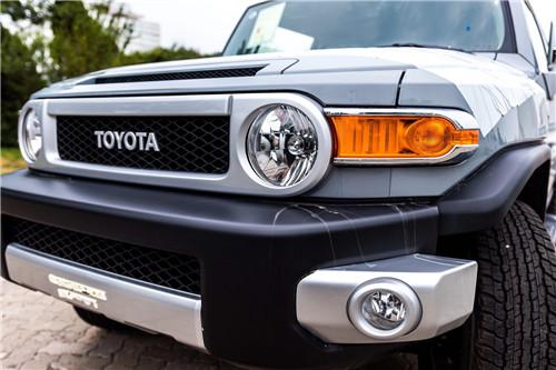 丰田FJ酷路泽在众多方面继承了FJ40的精髓,从外观看去简单的圆形前大灯和经典的丰田标志进气格栅,笔直的风挡玻璃白色的汽车顶棚以及醒目的丰田TOYOTA标志,彰显出它的硬派越野和与众不同。