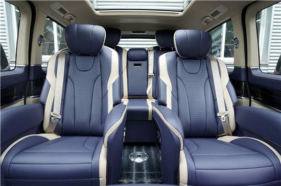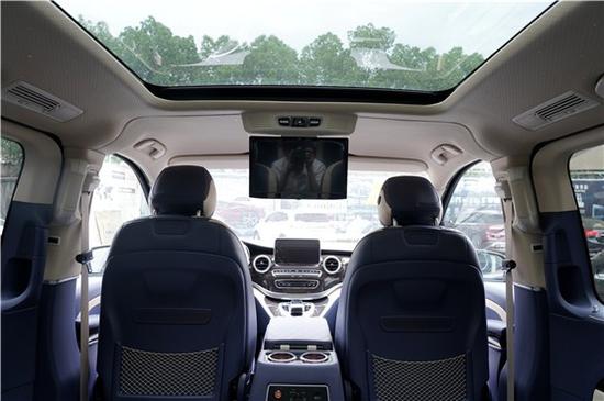 奔驰V级在这款车的定制中,没有采用车顶的设计,而是直接采用了两个超大尺寸的全景天窗,让自然光最大程度的洒进车内,就算是在汽车这样的人类工业智慧的结晶中也能和大自然亲近如初。