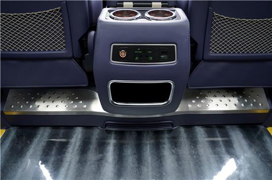 后车厢也是如此,蓝白两色真皮进行包覆,座椅也不例外,为了和整体的设计风格相吻合,也采用了同样的颜色。