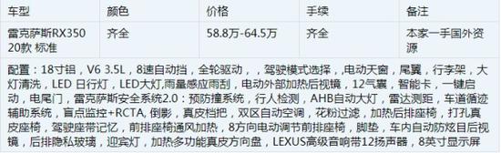 雷克萨斯近几年在华销量猛增,主要得益于ES (配置|询价)、RX以及NX (配置|询价)等车型的热销,9月全新RX以及RXL车型正式在国内市场上市,进一步巩固品牌在中大型豪华SUV这一细分市场中的地位。近日从天津保税区获悉,20款雷克萨斯RX (配置|询价)350新车即将到港,期待实车,一睹风采!