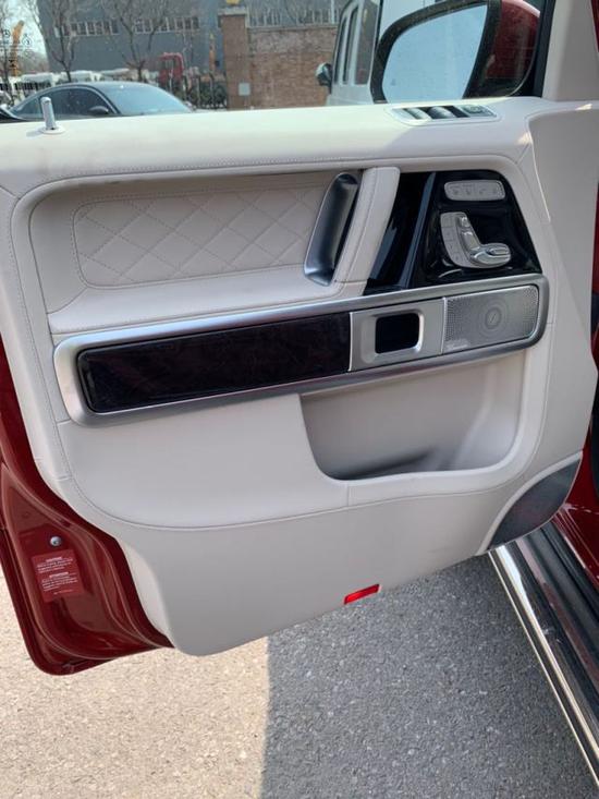 进口20款奔驰G63 AMG车内用料以真皮为主,部分碳纤维及铝合金装饰件。如今的G级是纯粹的豪华车了,跟那些纯粹越野车不一样的,车内配置很高,像这个座椅除了各种电动调 节功能外,还带有腰托、腿托以及加热、通风、记忆功能。座椅还是很厚实,都是真皮材质,有菱格纹的走线,红黑配色的座椅也是这台Edtion版的 特色所在。