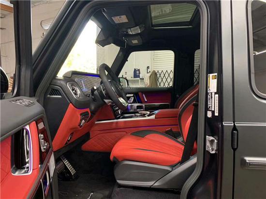 2020款奔驰G63 AMG豪华精致的真皮包覆提供了足够的舒适性和支撑性,通风和加热功能让乘客免受高温和寒冷的煎熬。中控台多处均采用碳纤维材料覆盖,带彩色TFT显示屏的AMG仪表盘、AMG主菜单和单独的挡位显示器以及采用白色照明的AMG门槛。名贵的选材及精湛的内装令人拍案叫绝。