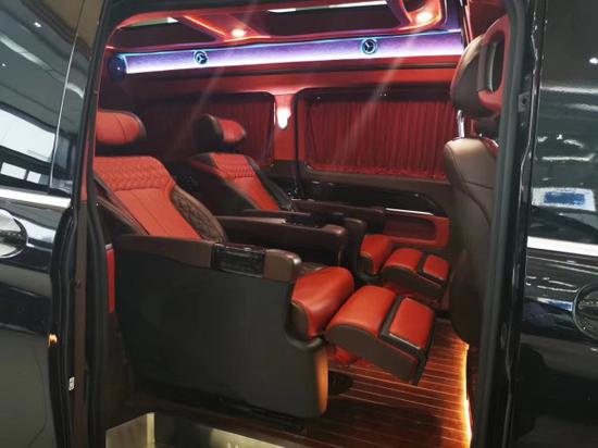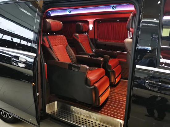奔驰V250L改装七座采用2+2+3排列方式,第二排航空级首长席,带靠背俯仰、前后滑动、脚托升降、180°旋转,固定式扶手,通风功能,四向头枕、按摩、加热等多项功能,全方位疏散旅途劳顿。全车座椅甄选进口头层牛皮原料,联手国际尖端手艺缝线商,只为创造最舒服的触碰感触。