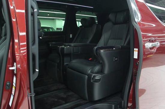 内饰方面Alphard提供了7个座位。其中驾驶座具有8向电动调整、附3组记忆功能的电动座椅。最舒适的二排位置,搭载4向电动调整Ottoman头等舱座椅,拥有三面向头枕、独立扶手、扶手置杯架、多功能折叠桌,以及椅背最大78度仰角;前后共拥有450mm滑移长度与高度脚踏垫设计。首排与二排独立系统的影音播放器,让驾驶员与乘客都能拥有专属的影音主控权,在前座驾驶使用卫星导航的同时,后座乘客仍可享受视听娱乐。