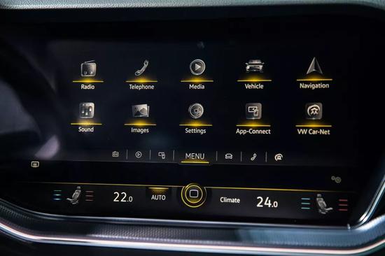 在途锐百万纪念版的车内,Innovision Cockpit 数字化驾驶舱,由15 英寸Discover Premium 信息娱乐系统、12 英寸可自定义式全液晶仪表以及HUD 抬头显示三块大屏共同组成。此外,系统装备了互联导航功能,并搭载可升级的3D 城市模型地图,用户还能通过“众行家”(VolkswagenCar-Net )车联网服务一键获取呼叫服务类、在线服务类和远程监控类多达20 余项服务。