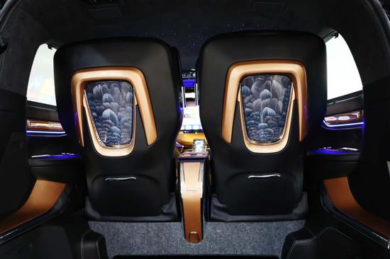 全车基本都是使用LED光源,晚上看起来特别亮,毕竟是白色的灯,而且灯的造型在晚上看起来很有立体感。车内中间排的氛围灯更是漂亮,不比奔驰S级 (配置|询价)差,中间上方的那个LED灯带可以选择7种颜色左右吧,还可以调光的暗亮程度,晚上自动门一打开,LED彩色灯带加上原本白色的阅读灯,真心好看。