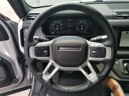 全新卫士的内饰设计变得不再简陋,中控台使用了涂层镁合金材质,进一步提升了内饰的耐用性。新车使用了全新的四辐式方向盘、12.3英寸全液晶仪表、10英寸中控屏幕,空调旋钮带有液晶显示屏,电子挡把位于中控屏下方,使用更加顺手。