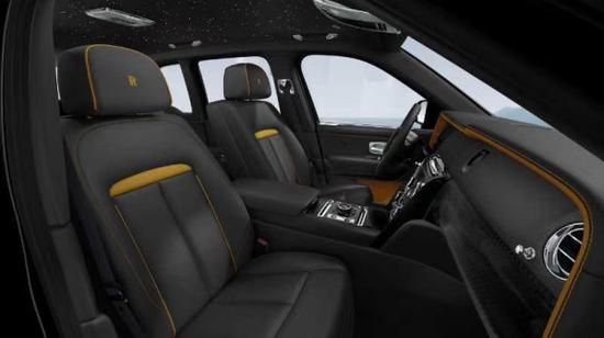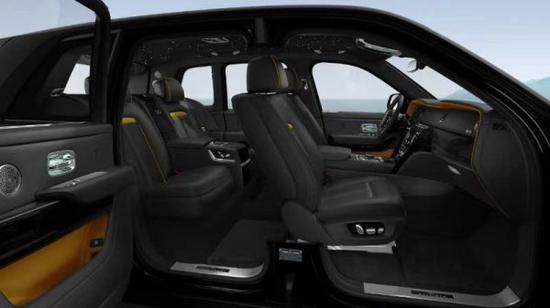 劳斯莱斯库里南座椅设计彰显劳斯莱斯汽车的品质与工艺,简洁而现代的马蹄铁图案,强调座椅的支撑力。整体椅背由一整张皮料精心塑形,打造出极为立体的表面。后排两个独立座椅之间设有后排中央固定扶手,可容纳带有劳斯莱斯威士忌酒具的酒柜、香槟酒具和冷藏箱,为后排乘客带来旅途中的终极享受。