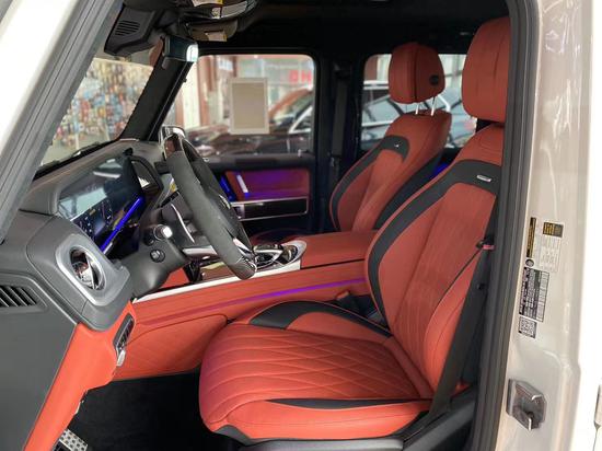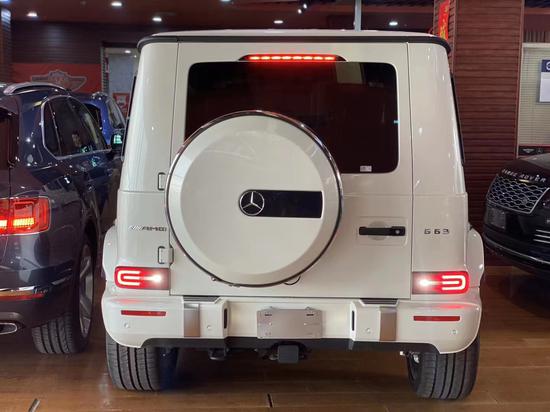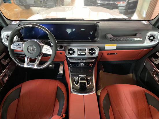 2020款奔驰G63 钻石白/红 配置:4.0升V8AMG发动机,585匹马力,AMG变速TCT 9速变速箱,红色卡钳,加热碳纤维翻毛皮方向盘,22寸大黑轮,碳纤维装饰板 天窗,环影,并道,前后电眼,雷达测距,多光束LED大灯,LED日行灯,柏林之声音响(15高功率扬声器、后备箱带低音炮),64色氛围灯,12.3 英寸全液晶中控屏,前排电动座椅带记忆,前排座椅通风加热按摩,后座椅加热,三区空调,碳纤维内饰,翻毛皮方向盘,黑色翻毛皮内顶,红色刹车卡钳,AMG性能排气系统,自动驾驶控制,小鼠标,一键启动,自动启停,脚踏,电动折叠后视镜带奔驰射灯,隐私玻璃 。