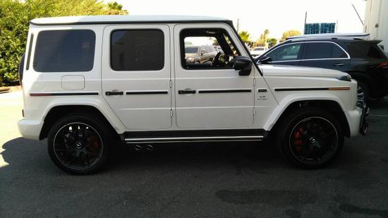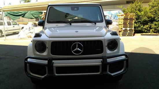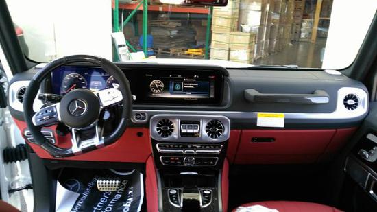 2020款奔驰G (配置|询价)63AMG 配置:钻石白外漆,黑色菱形格内饰,豪华座椅包,暗夜包,红色刹车卡钳,碳纤维方向盘,22寸黑色轮毂,碳纤维内饰,最高限速。
