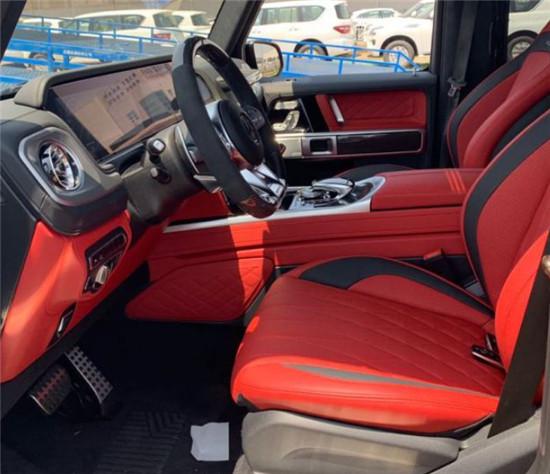 20款奔驰G63配置:磨砂黑红 暗夜包 高级内饰包(菱格座椅)磨砂金属漆 碳纤维内饰 碳纤维方向盘 座椅舒适包 22寸黑轮 运动按钮 后备箱垫 解除限速